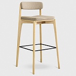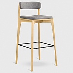 Cтул барный выполнен из массива ясеня – твердой породы дерева с прекрасной текстурой и отличными эксплуатационными свойствами. Плотность и прочность древесины сравнима с характеристиками дуба, что обеспечивает изделию из данного материала высокую устойчивость к деформации, ударам и долговечную конструкцию. Ткань обивки обладает высокими показателями износостойкости. Используемый в качестве наполнителя сиденья пенополиуретан отличается комфортной жесткостью.